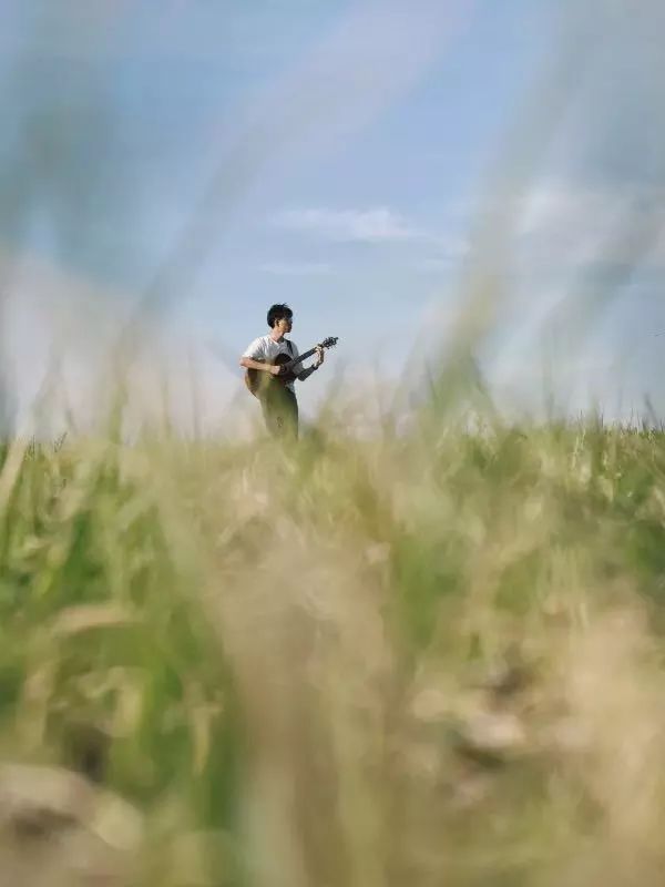 (1)趴下来,透过草、小道具来拍人。