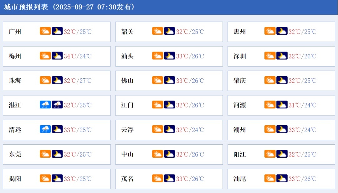 27日,雷州半岛有阵雨局部大雨,其余市县晴到多云,局部有阵雨。